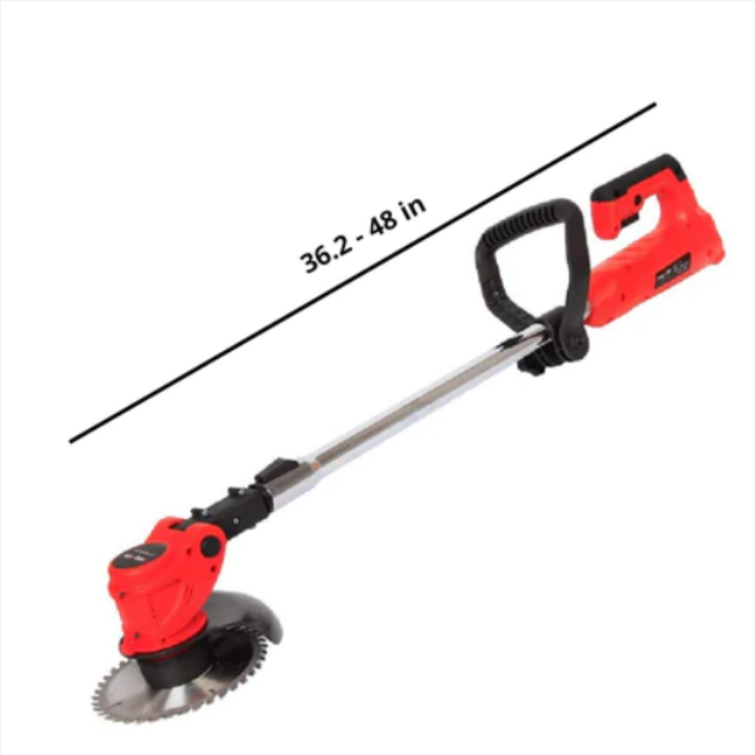 For a better and more comfortable working experience, the cordless grass trimmer can be adjusted in length to match your height. With its handy telescopic design, the electric brush trimmer can be adjusted from 36.2 to 48 inches long without a hassle.