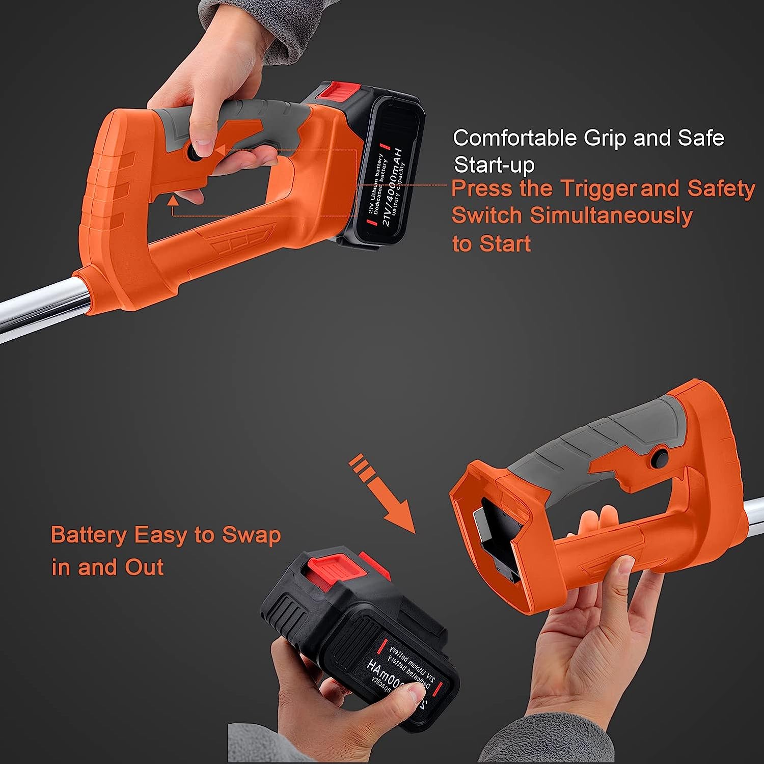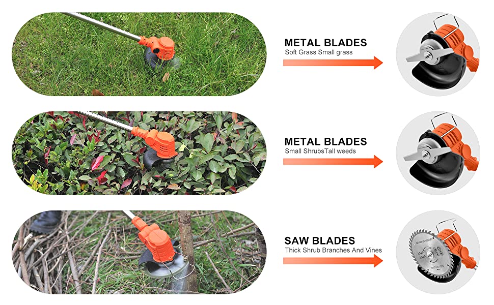 Weed trimmer uses a high-650W power motor with a superior run- time to ensure smooth mowing, get the garden grass trimmer, get more efficiency out of your yard work. The body weighs only 2.6lbs only, which is lightweight,women can easily control and use and will not be tired after working for a long time.